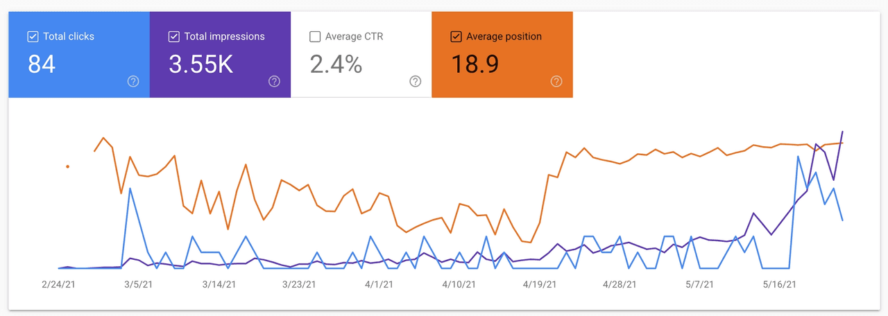 Check the screenshot below that shows how we've been gaining impressions at the same time our rank fell quite a bit but when we started having FAQs on our page that contained a bunch of our keywords you can see a big improvement.